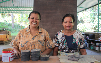Suar-Holz, eingearbeitete Kokosnuss- und Bambusscheiben, Ø 17 cm