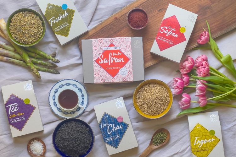 echte Safranfäden aus Afghanistan, in hochwertiger Geschenkbox, inklusive Journal "Voices of Afghanistan", Rezept- und Infokarten, 1 g