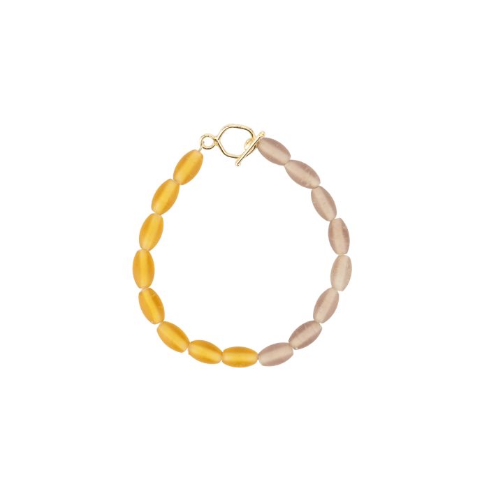 Lust auf ein fröhliches Accessoire, das Dein Handgelenk in Szene setzt? Das Armband „Farbspiel“ bringt zauberhafte Farbakzente in Gelb und Rosé in Deinen Alltag und schenkt jedem Outfit eine lebendige, stilvolle Note. Die ovalen Glasperlen schimmern im Licht und lassen Dich bei jeder Bewegung strahlen.