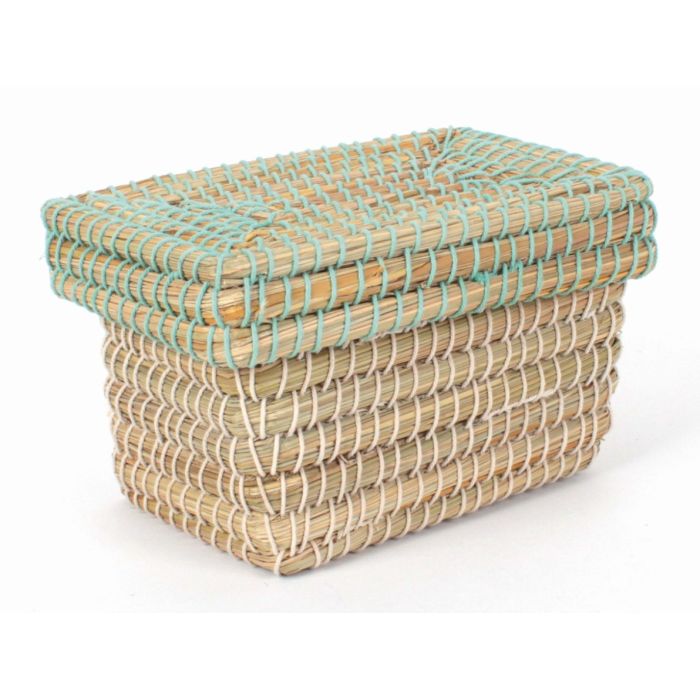 Der Aufbewahrungskorb mit Deckel „Wave“ bringt stilvolle Leichtigkeit und ein Gefühl von Geborgenheit in Dein Zuhause. Jeder Korb wird sorgfältig aus Kaisa-Gras von erfahrenen Kunsthandwerker*innen in Bangladesch geflochten, deren Können und Liebe zum Detail in jedem Stück spürbar werden. Die türkis-weiße Baumwollumwicklung schenkt dem Korb eine besondere Optik und eine angenehm weiche Haptik, die zum Anfassen einlädt.