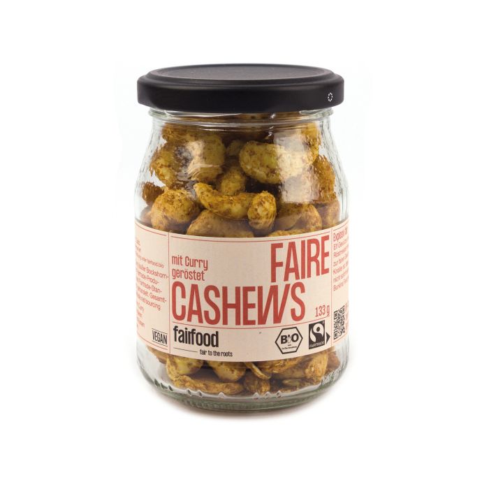 Die Cashewkerne werden von Hand aus der Frucht geholt, geknackt und geschält, bevor sie auf Deinem Tisch landen. Dabei unterstützen wir die lokale Wirtschaft und bieten den Produzent*innen faire Arbeitsbedingungen. Unsere Zusammenarbeit mit fairfood sichert Dir die höchste Qualität, und jeder Kauf trägt dazu bei, den Fairen Handel zu fördern. Gönn Dir diesen köstlichen Snack, der nicht nur lecker ist, sondern auch für eine gerechtere Welt steht. Genieße die Höhepunkte des Geschmacks und unterstütze gleichzeitig nachhaltige Produktionswege!