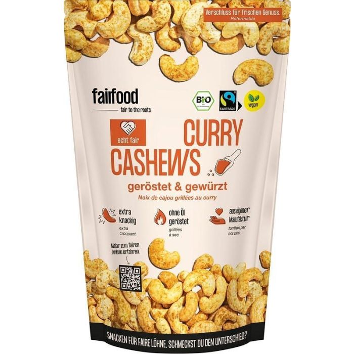 Entdecke die unwiderstehliche Kombination aus würzigem Curry und salzigem Meersalz auf köstlichen Bio-Cashews von fairfood! Diese knackigen Nüsschen wurden ohne Öl geröstet, was sie besonders knackig macht. Sie sind der hervorragende Snack für zwischendurch und unterwegs, ideal für jede Gelegenheit.