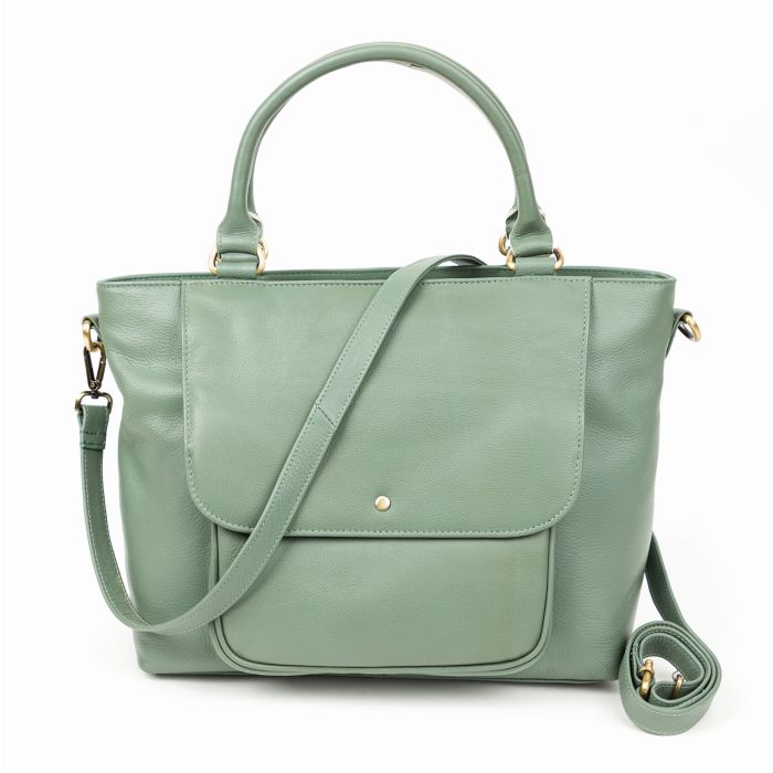 Diese elegante Damen-Handtasche aus hochwertigem, fair gehandeltem Rindsnappa wird Dein treuer Begleiter für stilvolle Auftritte. Die satte grüne Farbe und das exklusive Material, das in Indien unter fairen Bedingungen produziert wurde, verleihen ihr einen zeitlosen Look. Mit den Maßen 37 x 24 x 13 cm hast Du genügend Platz für all Deine Utensilien, ohne dass die Tasche unförmig wirkt. Die sorgfältige Verarbeitung des Rindsnappaleders gewährleistet eine angenehme Haptik und beeindruckende Langlebigkeit. Innen sorgen praktische Fächer für Ordnung. Diese Handtasche wird schnell zu Deinem unverzichtbaren Accessoire.