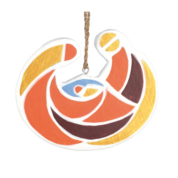 Albesia-Holz, handbemalt, weiß/gold/orange, 9 x 8 cm