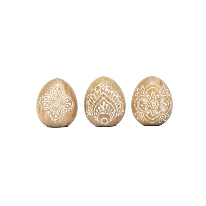 Mango-Holz, handbemalt, 3er-Set, natur/weiß, 6 x 4,5 cm