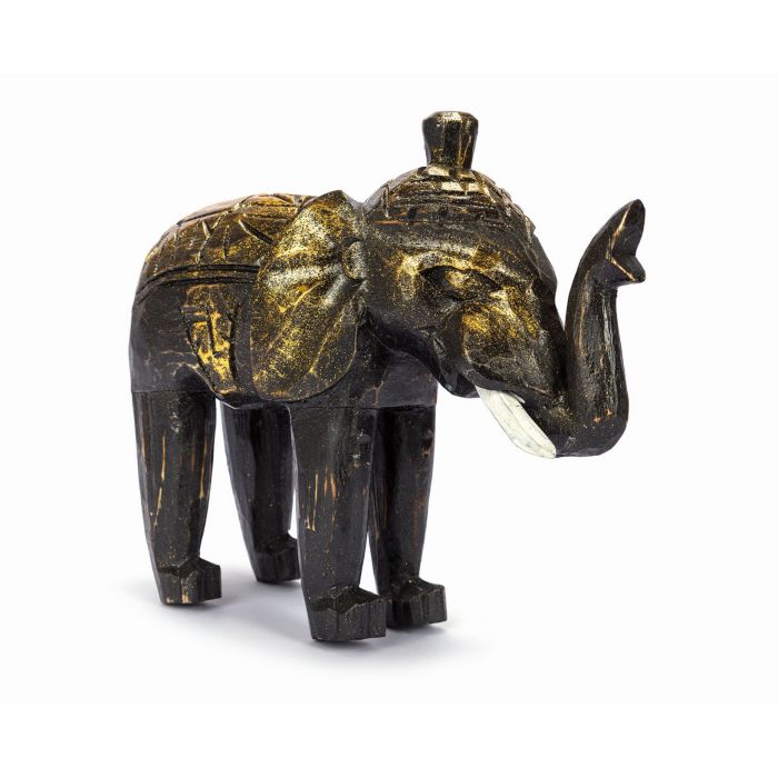Albesia-Holz, handbemalt, schwarz/gold, 22 x 9 x 20 cm