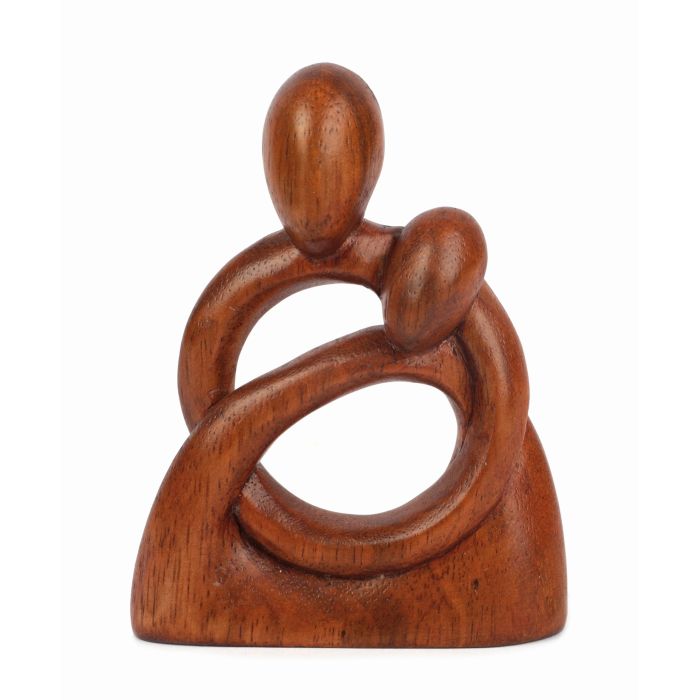 Diese ca. 12,5 cm große, handgeschnitzte Statue aus Regenbaumholz strahlt Nähe und Geborgenheit aus und symbolisiert Vertrautheit durch zwei ineinander verschlungenen Körper. Die feine Maserung und unvergleichliche Optik sind typisch für das Tropenholz, da die Bäume nur über sehr wenig Äste verfügen. Wegen ihrer besonderen Farbe gelten Möbel und Accessoires aus Regenbaumholz als wahre Blickfänger, die einem Raum das gewisse Etwas verleihen. Gefertigt und verarbeitet wird das dekorative Kunstobjekt von Handwerker*innen unseres Handelspartners Mitra Bali unter fairen Bedingungen in Indonesien. Selbstverständlich stammt das Holz aus sicheren, nachvollziehbaren Quellen.