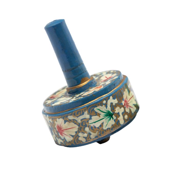 Der dekorative, bunte Kreisel "Kashmiri" ist ein echtes Kunstwerk aus Pappmaché. Handbemalt und lackiert, bringt er Farbe und Bewegung in Dein Zuhause. Ob als Dekorationsstück oder Spielzeug – dieser Kreisel mit einer Länge von 6 cm und einem Durchmesser von 4,5 cm, ist ein Unikat und zeugt von der meisterhaften Arbeit indischer Kunsthandwerker*innen unseres Handelspartners ASHA.