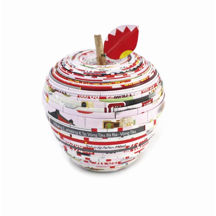 Upcycling meint aus alten ausgedienten Materialien Neues herzustellen. In Zusammenarbeit mit unserem Handelspartner Mai Vietnamese Handicrafts stellt eine Produzent*innengruppe in der Provinz Tuy Hoa originelle Schalen, Dosen und Dekoelement aus ausgedientem Zeitungspapier her. Dafür werden die geschnittenen Streifen aus Zeitungspapier mit Klebstoff behandelt, in der Sonne getrocknet, anschließend wieder leicht angefeuchtet, in Form gebracht und kunstvoll arrangiert. So entstehen farbenfrohe Wohnaccessoires in Handarbeit. Jedes Stück ist ein Unikat!