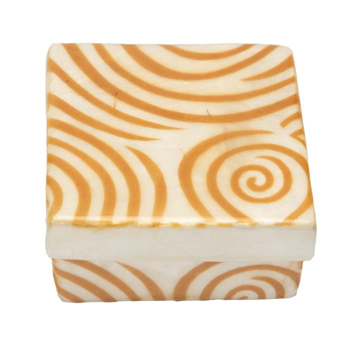 Entdecke diese einzigartige, eckige Dose aus Capiz, einer schimmernden Perlmutt-Schale der Jakobsmuschel, die in den warmen Gewässern der Philippinen zu Hause ist. Jede Dose ist 3 cm hoch und 6,5 x 6,5 cm breit. Sie wird von den talentierten Kunsthandwerker*innen unseres Fair-Trade-Partners SAFFY unter fairen Bedingungen liebevoll handgefertigt. Ihre leuchtenden Farben - Gelb und Weiß - und ihr filigranes Design, machen sie zu einem wahren Eyecatcher – perfekt für Schmuck oder kleine Schätze! Mit jeder Dose unterstützt Du nachhaltiges Handwerk und stärkst lokale Gemeinschaften.