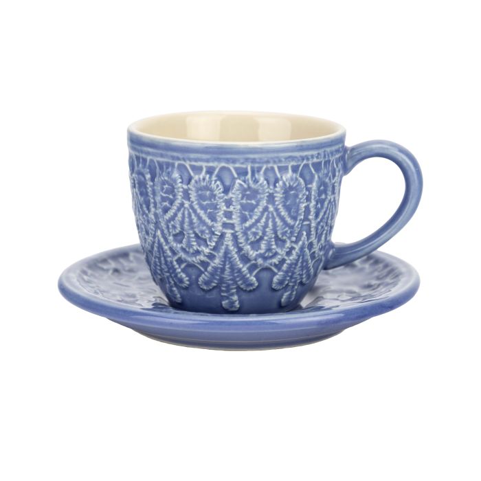 Keramik, blau, Tasse Ø 6 cm, H 5,5 cm, 35 ml, Untertasse Ø 10 cm, geeignet für Mikrowelle und Spülmaschine
