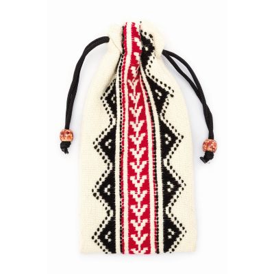 100% Baumwolle, Synthetik, Stickerei aus 100% Wolle, handbestickt nach traditioneller Art, Kordelzug aus Synthetik, beige/rot/schwarz, 11 x 20 cm