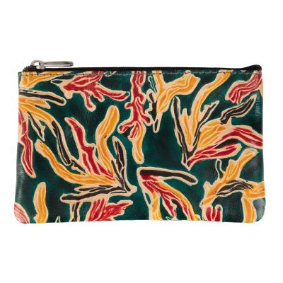 Ziegenleder, rot/grün, zusätzliches Reißverschlussfach, 16 x 11,5 x 2 cm