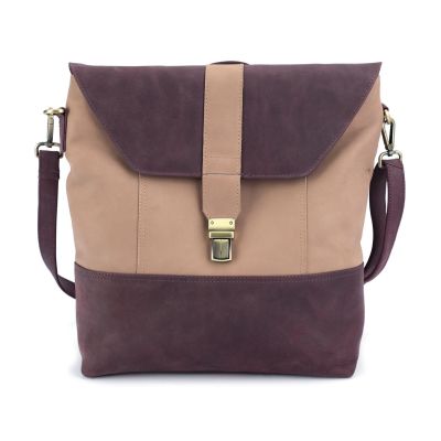 Rindsleder Crunch, als Rucksack umfunktionierbar, beige/lila, 26 x 5 x 18 cm