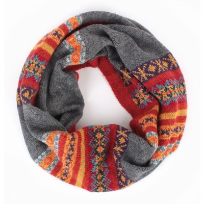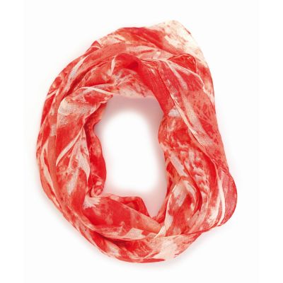 100% Viskose, handgewebt und -bedruckt, rot/multicolor, 50 x 160 cm