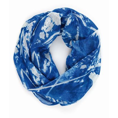 100% Viskose, handgewebt und -bedruckt, blau/multicolor, 50 x 160 cm
