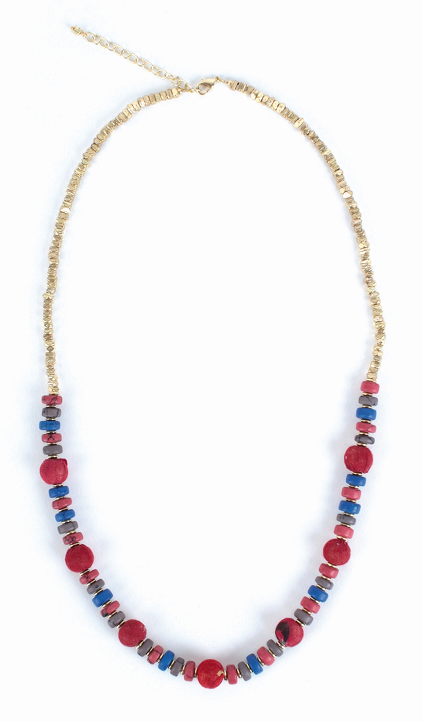 Messing, Halbedelsteine, goldfarben, L 40,5 cm + Verlängerung, Ø 3 cm