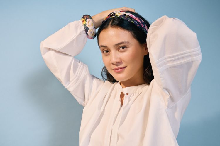 handgewebt und- bedruckt, 100% Wolle, lindgrün/creme, dehnbar, one size