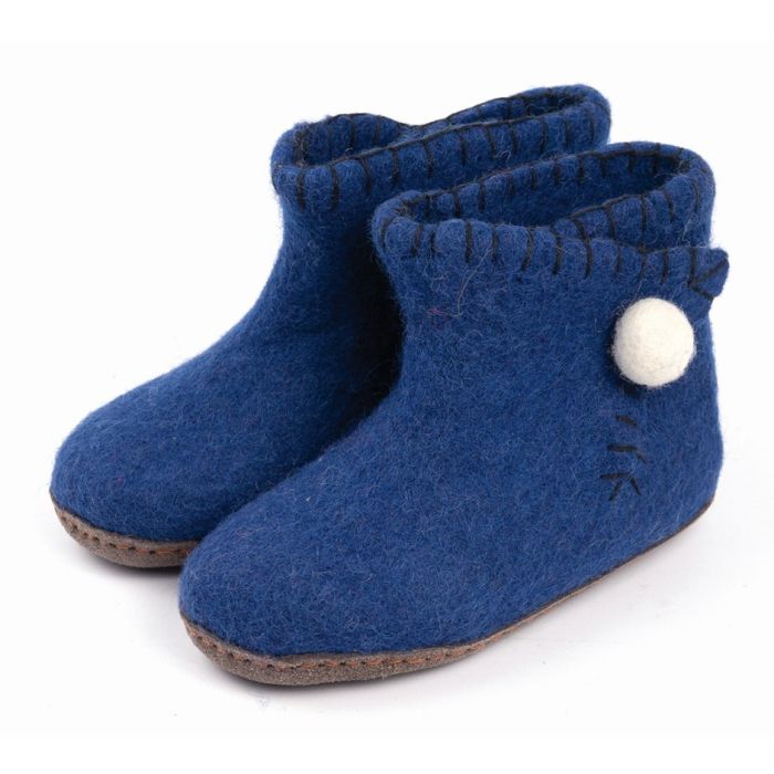Diese einmaligen Filzschuhe werden von unserem Handelspartner Sana Hastakala aus Nepal handgefertigt und stehen für Qualität und soziale Verantwortung. Mit ihrem handgefertigten Design und der schönen blauen Farbe sind sie nicht nur praktisch, sondern auch super kuschelig.
