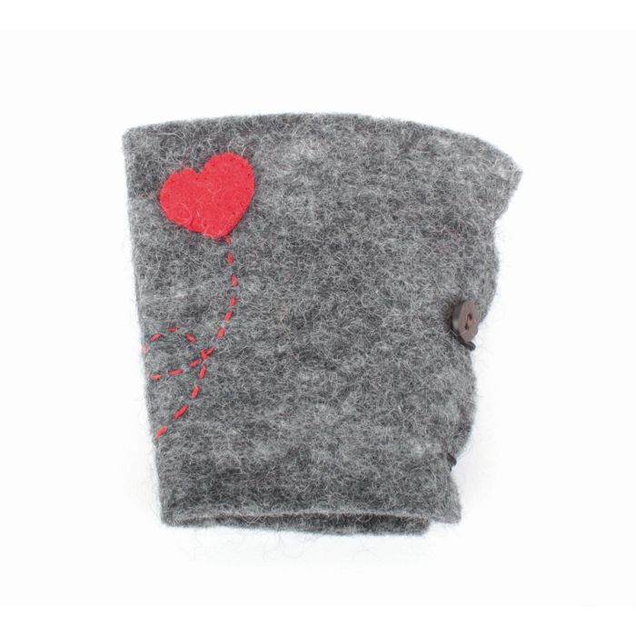 100% Wolle, für Coffee-To-Go-Becher, dehnbar, grau/rot, H 12 cm