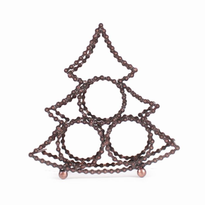 für 3 Flaschen, recycelte Fahrradkette, kupferfarben, 30 x 10,5 x 30 cm