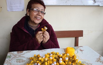 Gestrickte Fingerpuppe "Gelbe Ente"