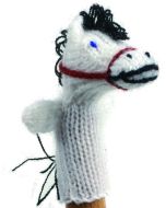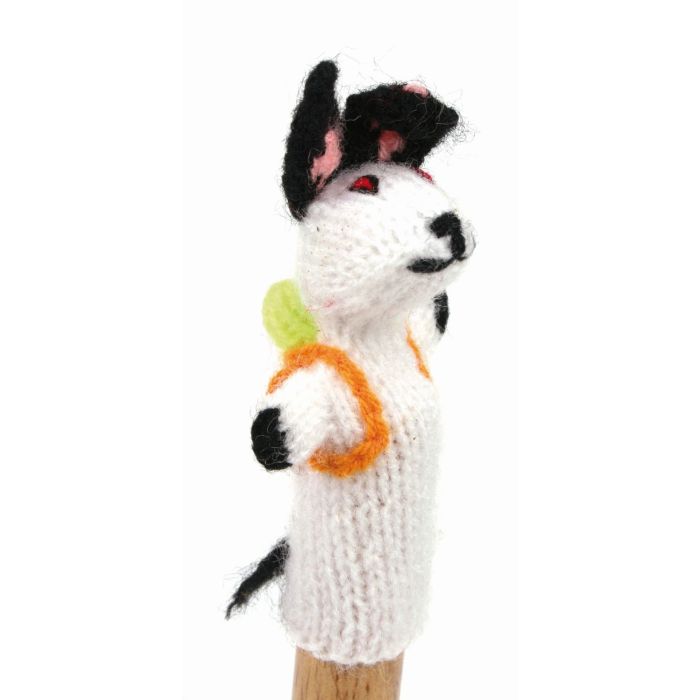 Gestrickte Fingerpuppe "Hase mit Rucksack"