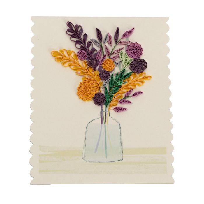 Genau die richtige Wahl, um einem geliebten Menschen oder Freund*in Grüße von Herzen zu übermitteln. Aufwändig per Hand unter fairen Bedingungen gefertigt und verziert von vietnamesischen Kunsthandwerker*innen unseres Handelspartners Mai Vietnamese Handicrafts aus buntem, gerollten Papier. Dieser wunderschöne Blumenstrauß in Form einer Karte ist eine liebevolle Geste und lässt sich auch toll als kleines Kunstwerk an die Wand hängen. Zum Verschicken wird ein Kompaktbriefporto benötigt.