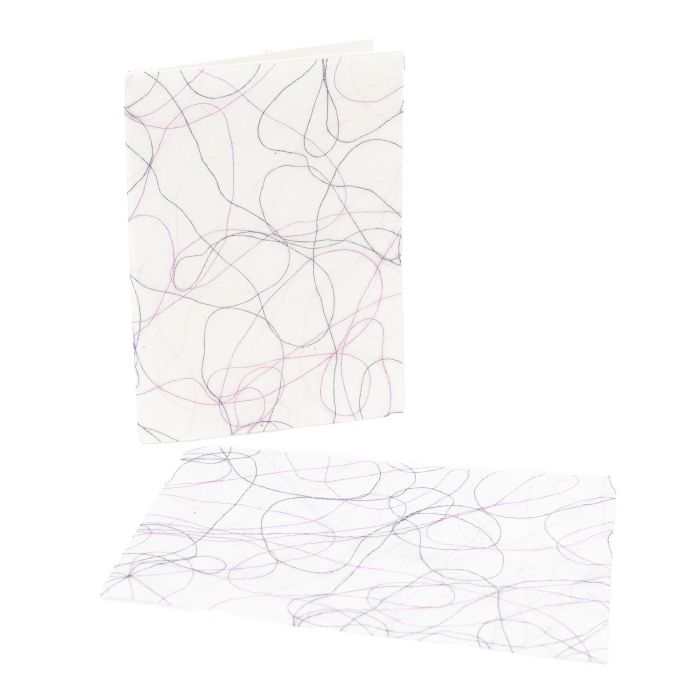 handgeschöpftes Seidenpapier, Baumwollfäden, Doppelkarte mit Umschlag, weiß/Pinktöne, 11 x 15 cm