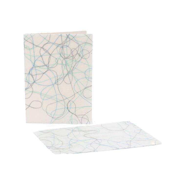 handgeschöpftes Seidenpapier, Baumwollfäden, Doppelkarte mit Umschlag, weiß/Blautöne, 11 x 15 cm