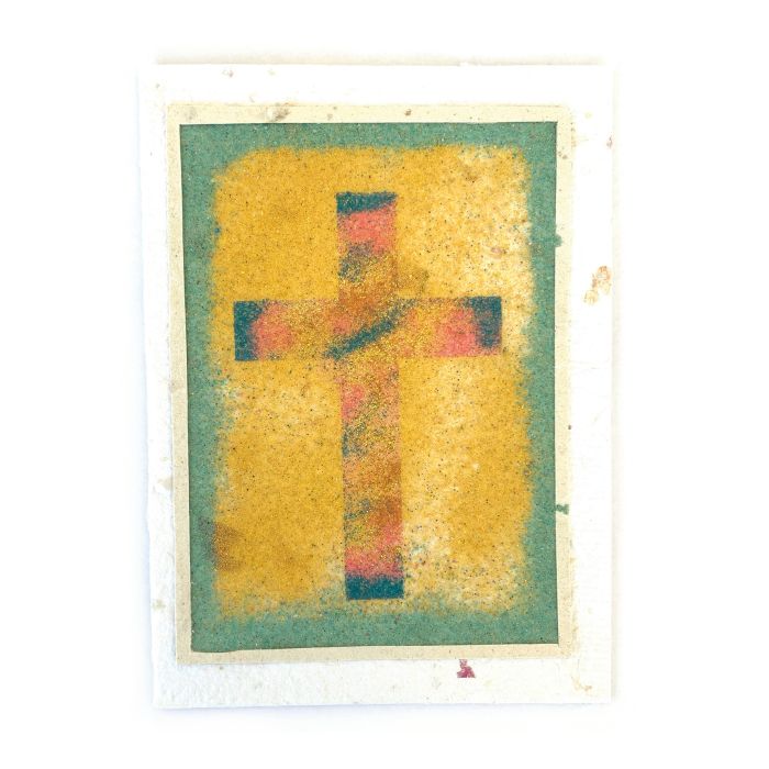 handgeschöpftes Papier, Applikationen aus Sand, Doppelkarte mit Umschlag, 12 x 17 cm