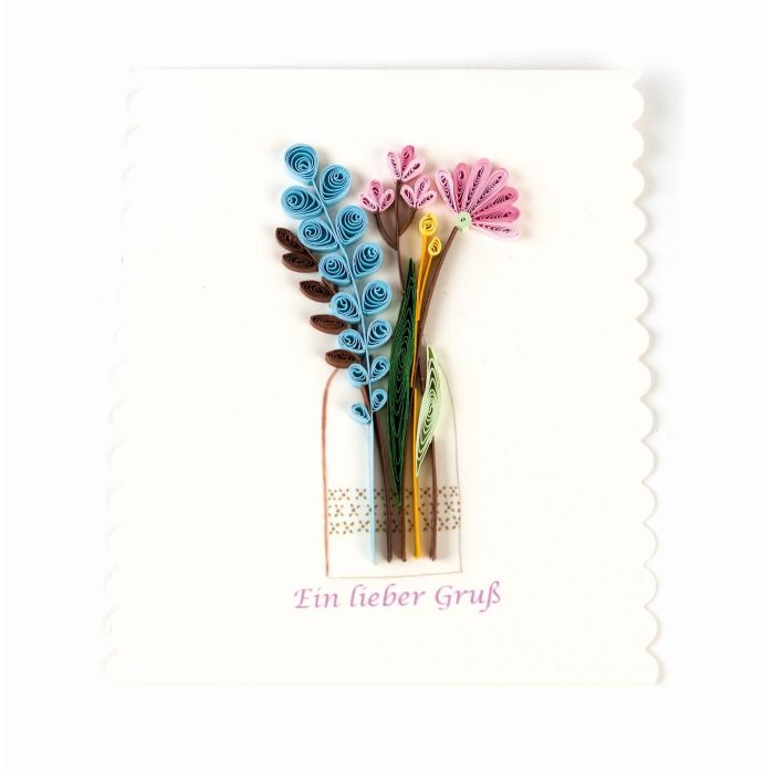 Motiv aus kunstvoll gerolltem Papier, Doppelkarte mit Umschlag, 9 x 11 cm