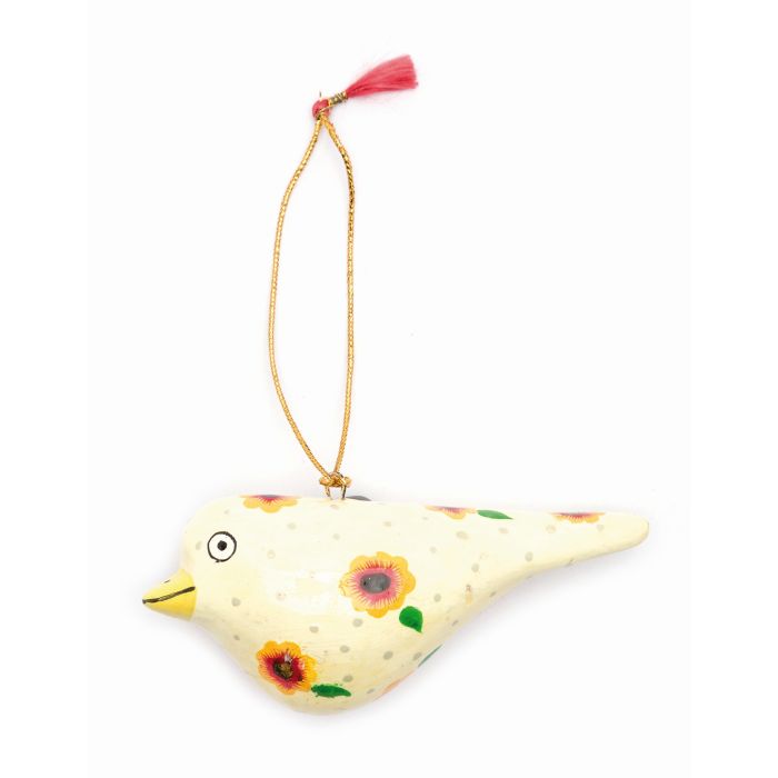 Pappmaschee, lackiert und handbemalt, creme/weiß mit floralem Muster und Punkten, 5,5 x 11,5 cm