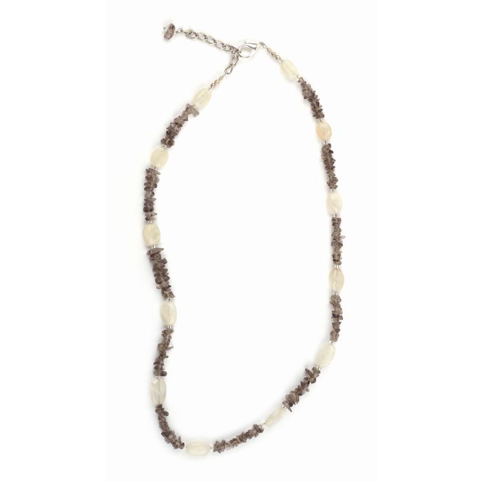 Diese Halskette mit Mondstein vereint handverlesene Rauchquarz- und Mondstein-Elemente mit elegantem Glas. Die sanften Weiß- und Grautöne sorgen für eine stilvolle Leichtigkeit, die Deine Persönlichkeit unterstreicht und jedem Outfit einen besonderen Ausdruck verleiht. Die ausgewogene Materialmischung schmeichelt Deiner Haut und trägt sich angenehm im Alltag wie auch zu Festlichkeiten. Die Länge von 50 cm sitzt ideal im Dekolleté und macht die Kette zu einem vielseitigen Lieblingsstück.