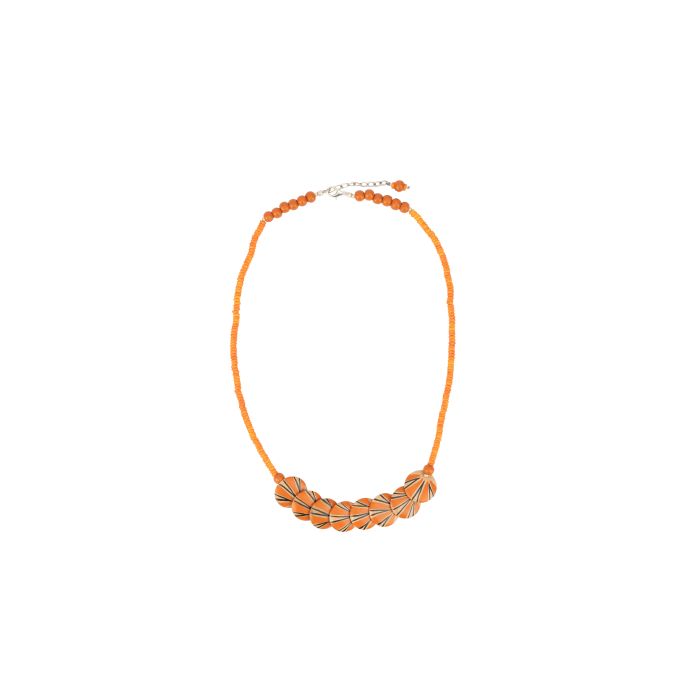 Mit dieser einzigartigen, handgemachten Kette bringst Du Wärme und Lebendigkeit in Deinen Alltag. Die Kombination aus handbemalten Holz- und Beinelementen in intensivem Orange trifft auf naturbelassene Töne, die Deine Persönlichkeit unterstreichen. Jede einzelne Halskette wurde in Indien von Kunsthandwerker*innen liebevoll und fair gefertigt. Dank der Verlängerung passt die Kette sich flexibel an Deinen Look an, egal ob leger oder elegant.
