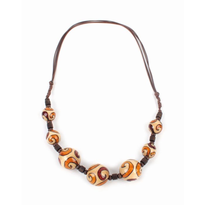 Erlebe eine Kette mit Holzperlen, die pure Handwerkskunst ausstrahlt und mit ihrem besonderen Design begeistert. Die zarten Holzperlen, liebevoll lackiert in warmen Brauntönen, werden von erfahrenen Kunsthandwerker*innen in Vietnam kunstvoll arrangiert. Das leichte Baumwollband macht das Tragen besonders angenehm, während die 30 cm Länge ideal für einen stilvollen Akzent im Alltag ist. Das außergewöhnliche Muster sorgt für einen eleganten Blickfang, den Du vielseitig kombinieren kannst.