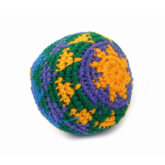 Vor rund 4000 Jahren wurde in Asien mit einer Form des heute beliebten Häkelballs gespielt. Auch bei den Maya war ein ähnliches Ballspiel bekannt. Der Umgang mit dem Häkelball erfordert viel Geschick. Mit Beinen und Füßen versuchen ein oder mehrere Spieler*innen den kleinen Ball in der Luft zu halten. Auf diese Weise werden Kondition und Beweglichkeit geschult und das Wichtigste: die sportlichen Übungen mit den bunten Bällchen machen Spaß! Hergestellt werden die Häkelbälle von unserem Handelspartner CreArte aus Guatemala. Der Unterschied zu Jonglierbällen besteht in der Füllmenge des Granulats.