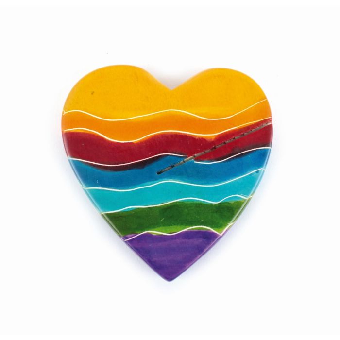 Die dekorativen Kartenhalter setzen Grußkarten aus dem Urlaub oder Lieblingsfotos in Szene. Damit sind Eure Lieben immer dabei, auf dem Schreibtisch oder auf der Wohnzimmerkommode. Die Herzen werden in Kenia aus Speckstein hergestellt. Die Region Kisii ist für ihr Specksteinvorkommen berühmt. Nachdem die filigranen Herzen aus den großen Steinbrocken mit einfachen Werkzeugen herausgearbeitet wurden, erhalten sie ihre ebenfalls per Hand aufgebrachte individuelle Farbgebung.