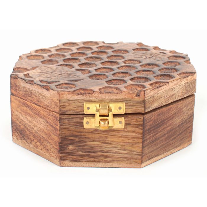 Mango-Holz, mit aufwändiger Holzschnitzerei, natur, 16 x 16 x 6,5 cm