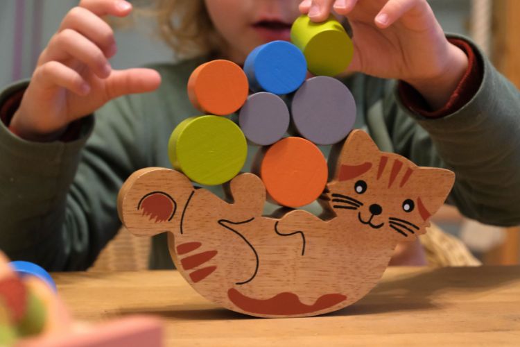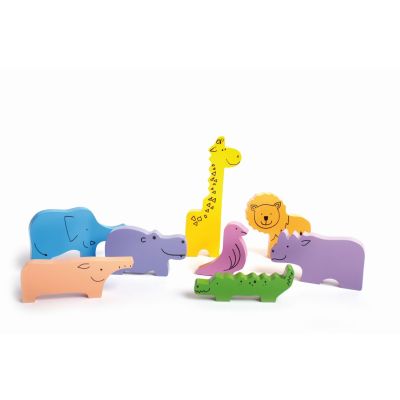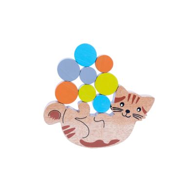 Kautschuk-Holz, Alstonia-Holz, mit 8 bunten Bällen zum Stapeln, 9-teilig, natur/bunt, L 20 cm
