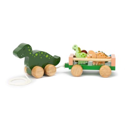 Kautschuk-Holz, Alstonia-Holz, mit Anhänger und verschiedenen Dinos, 6-teilig, grün/bunt, L 33 cm