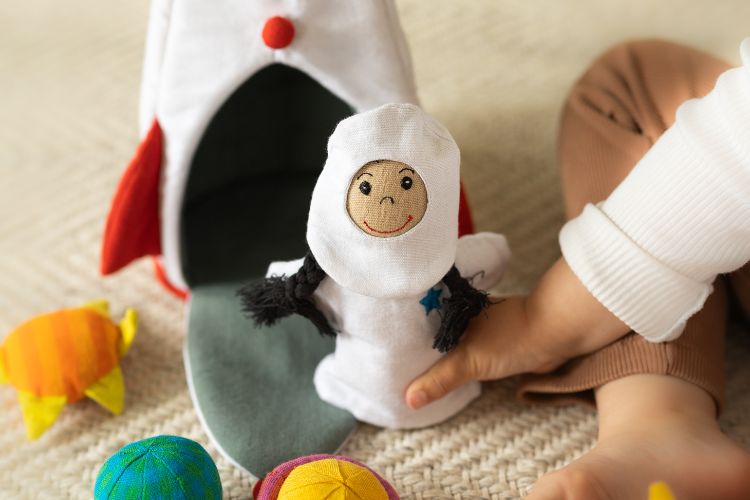 100% handgewebte Baumwolle, Füllung: Polyester, 8-teilig mit Astronautin, Sonne, Mond, Erde und Planet, bunt, 25 x 18 x 20 cm