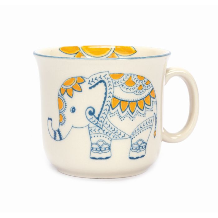 Keramik, handbemalt, geeignet für Mikrowelle und Spülmaschine, beige/blau/gelb, H 7 cm, Ø 8 cm