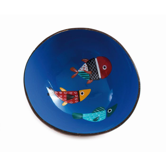 Erlebe einen Hauch von Sommer und Meer mit der Kokosnuss-Schale „Fische im Meer“, die sofort Farbe und Freude in Deinen Alltag bringt. Das kunstvoll gestaltete, blau und bunt lackierte Innenleben lässt jeden Blick hinein zum Vergnügen werden und macht die Schale zu einem echten Lieblingsstück auf Deinem Tisch.