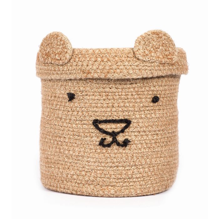 Dieser einzigartige Korb für Kinderzimmer „Bär“ bringt Herz und Freude in jedes Kinderzimmer, indem er nicht nur für Ordnung sorgt, sondern als liebevoll handgefertigtes Einzelstück begeistert. Das zarte Jute-Naturmaterial fühlt sich angenehm an und bezaubert durch das süße, handgestickte Bärengesicht mit Ohren aus Jute, die zugleich als praktische Griffe dienen. Mit 18 cm Höhe und einem Durchmesser von 20 cm bietet der Korb ausreichend Platz für Spielzeug oder Schätze und wird im Alltag zum knuffigen Hingucker.
