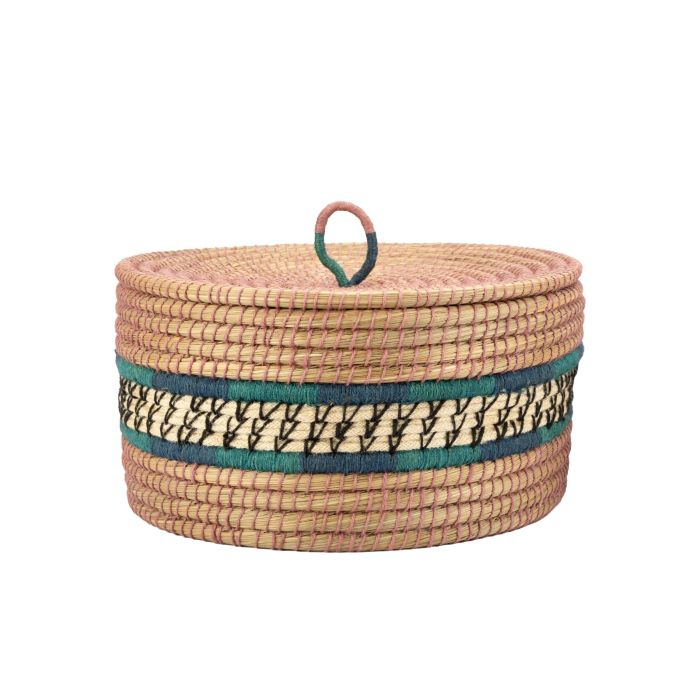Das farbenfrohe Design bringt Wärme und Individualität in Dein Wohnambiente. Die hochwertig verarbeiteten Naturmaterialien fühlen sich angenehm an und sorgen für langlebige Qualität. Jeder Korb ensteht in liebevoller Handarbeit unter fairen Bedingungen und schenkt Deinem Zuhause einen Hauch von Individualität. Ob für Badaccessoires, Spielzeug oder Kleinigkeiten, mit diesem Korb entscheidest Du Dich für ein wirklich besonderes Stück, das Design, Funktionalität und Ethik verbindet.