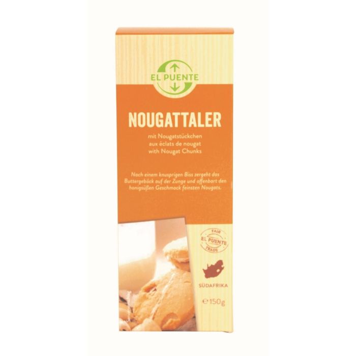 Die Nougattaler sind mehr als nur Mürbekekse, sie sind ein wahrhaftiger Genuss für alle, die das Besondere lieben! Mit ihrem zarten Mürbeteig und den feinen Nougatstückchen bieten sie ein unvergleichliches Geschmackserlebnis, das einfach glücklich macht. Diese Kekse stammen aus Südafrika und unterstützen durch ihre 100 % Wertschöpfung die lokale Wirtschaft sowie faire Arbeitsbedingungen. Das bedeutet, dass jeder Biss nicht nur lecker ist, sondern auch Gutes tut!