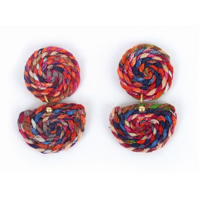 Diese handgefertigten Ohrringe aus Indien verbinden recycelte Baumwolle mit edlem Messing zu einem besonderen Schmuckstück, das Farbe in Dein Leben bringt. Die zarten Materialien machen die Ohrringe extra leicht und sorgen für ein angenehmes Tragegefühl. Perfekt für den ganzen Tag. Die kunstvoll gedrehte Form lenkt die Blicke auf Dich und lässt sich vielseitig kombinieren, um Deinen Stil authentisch zu unterstreichen.