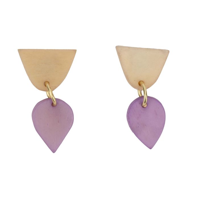 Lass Dich von unseren handgefertigten Ohrsteckern aus Indien verzaubern. Sanfte cremefarbene und lila Töne vereinen sich mit der geschmeidigen Oberfläche von Messing und Bein und schaffen ein Schmuckstück, das wertvoll und gleichzeitig zeitlos wirkt. Die runden, organischen Formen sorgen nicht nur für eine besonders angenehme Haptik, sondern drücken auch eine liebevolle und authentische Handschrift aus, welche die Einzigartigkeit Deines Stils unterstreicht.