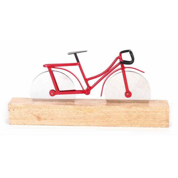 Edelstahl, Mango-Holz, nicht für die Spülmaschine geeignet, rot/schwarz, Fahrrad: 20 x 11 cm, Holzblock: 26 x 3,5 x 3,5 cm